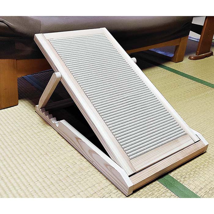 大型犬用6段スロープ(高モデル) 【送料無料】 強度を増したペットスロープ 老犬 折りたたみ式 ソファ 玄関 折りたたみ式 ・サイズ:高さ×幅×長さ:約34~40cm×38cm×70cm※折り畳んだ時のサイズ:厚さ×幅×長さ:約6cm×38cm×70cm ・素材:天然木(杉材)ワトコオイル(ナチュラル)仕上げ、表面マット貼り ・耐荷重:約45kg ・強度を増した大型犬用スロープ(傾斜角度可変式)です。高さ約34~40cmを6段階でお選びいただける高型モデルです。ワンちゃんがソファーや玄関に上がる時のために、傾斜角度を6段階で調整できます。 ・滑り止めクッションマットは、簡単に取り外しできるように、両面テープで固定してあるだけです。でも、クッション自体が滑り止め効果が高いので、普段つけっぱなしで、全くずれることはありません。また、このタイプのクッションマットは、ホームセンターでは、柄物で切り売りしているところもあります。そればかりか、このクッションマットは、100均ダイソーで買えます。とてもコスパが良く、古くなったら交換できるので便利です。 ・注意事項:本商品は、完全受注生産の為、注文の順に製作・納品を行います。また、只今多くの注文をいただいている為、現在の予約状況から判断して、配送予定日は 14〜21営業日程お待ちいただいております。ご了承ください。