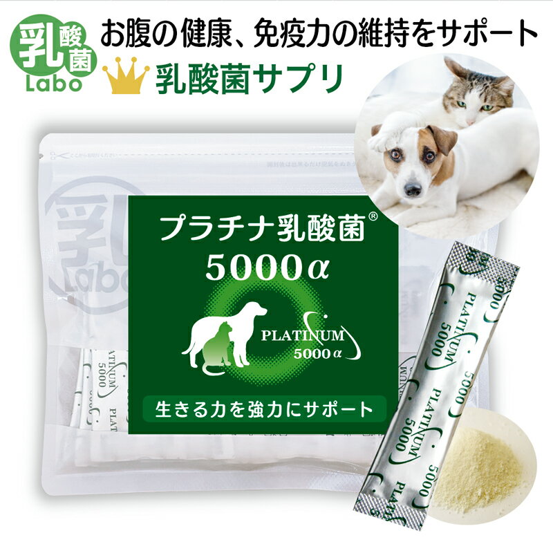 乳酸菌 サプリ 猫 犬 ペット 動物用サプリメント 粉 パウダー 顆粒 送料無料 濃縮乳酸菌 ナノ型乳酸菌 国産 乳酸菌ラボ お腹の健康 免疫調整 口内環境 腸活 皮毛向上 無添加 アレルギーフリー プラチナ乳酸菌5000α 30包入×1