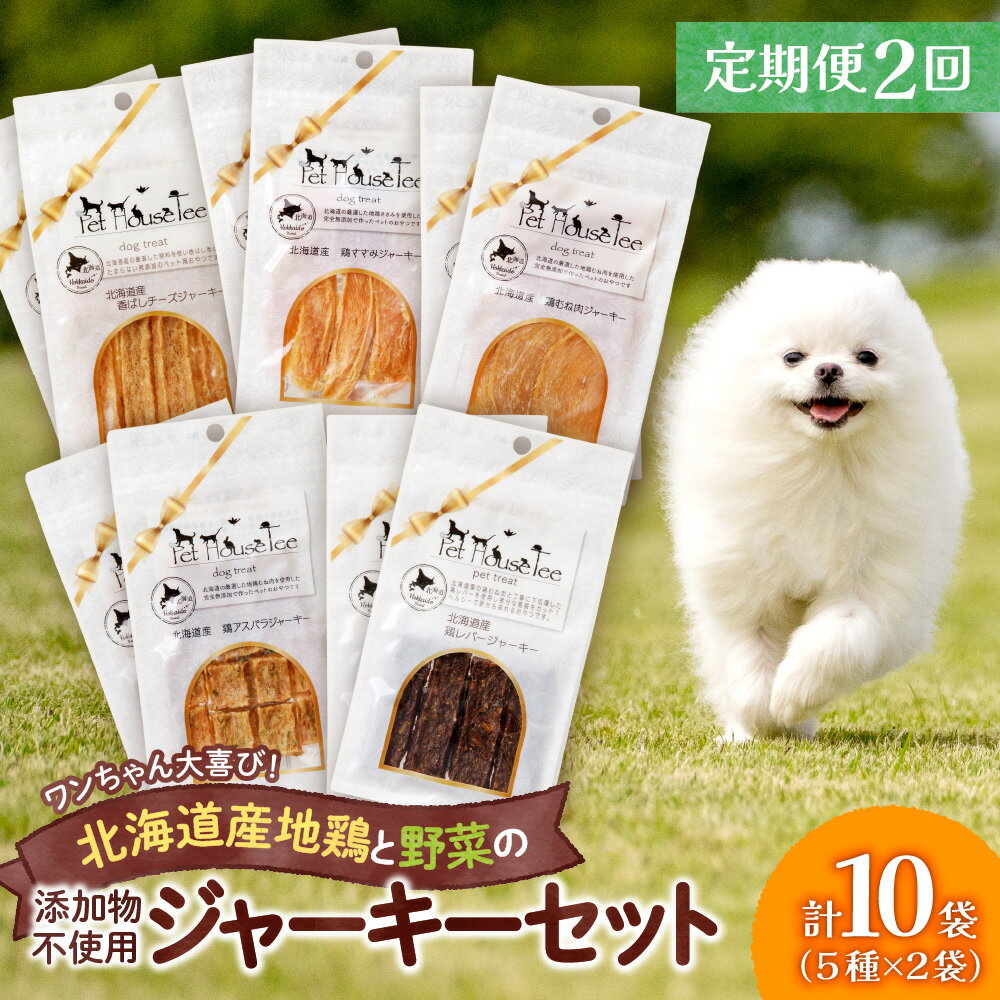 【ふるさと納税】 定期便 2回 無添加ジャーキー セット 5種類 2袋 愛犬用 ペットフード 地鶏 鶏 野菜 無添加 動物 犬 ドッグ ペット ご褒美 餌 フード エサ おやつ 乾物 ごはん ご飯 間食 ペットフード ドックフード 北海道 札幌市