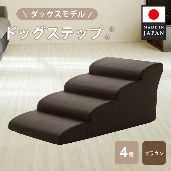 【ふるさと納税】ドッグステップ 4段(ブラウン)A387 / ドッグステップ 犬用 4段 クッション 滑りにくい 室内 ペット用品 小型犬 介護 補助 段差解消 厚木市