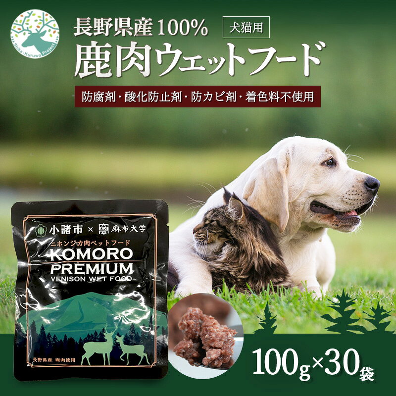 商品名 【ふるさと納税】ペットフード KomoroPremium 鹿肉 ウエットフード 100g×30袋 犬 猫 ペット フード お届け:決済より1ヶ月以内に発送