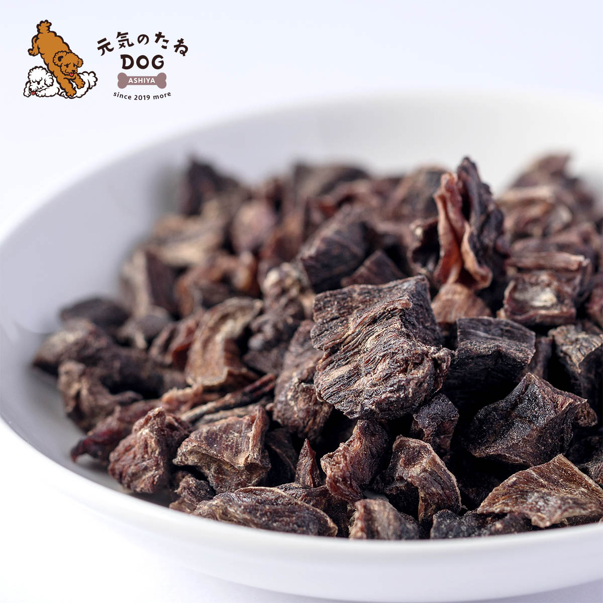 国産 無添加 鹿肉 デリシャスキューブ わたしたちの体は、食べたものでできています。それは大切な家族である犬たちもおなじこと。愛犬にはいつまでも元気で過ごしてほしい。 ずっとずっと一緒にいたい。 【元気のたねDOG】ではそんな願いをこめて、愛犬が安心して食べられるおやつをつくっています。おいしく食べて健康に。 愛犬の【元気のたね】になるおやつをどうぞ! 【この商品のポイント】 ●国産・無添加・無着色なので安心 ●栄養たっぷり低カロリー ●アレルギーリスクの低い鹿肉を使用 ●食べやすい一口サイズ ●手で割れる硬さなので、硬いものが苦手な子でもOK (製造過程で一部硬いものが混ざります) ※自然素材商品のため大きさが不揃いです。 鹿肉は高タンパク・低脂肪・低カロリー タンパク質は、筋肉・血・骨・皮膚・被毛など犬の体の約20%をつくる大切な栄養素。タンパク質が不足すると、体のすべてに影響が出て、免疫力も落ちるため病気を引き起こしやすくなってしまいます。 わたしたちに馴染みのある牛肉や豚肉と比べると、鹿肉はタンパク質の含まれる量が多く、低脂肪・低カロリーであることが大きな魅力です。 例えば、牛肉と比べると脂肪は約1/5・カロリーは1/2でありながら、タンパク質はなんと約2倍! これは、タンパク質の優等生と呼ばれるササミとほぼ同量です。 アレルギー対策にも 鹿肉は愛犬にとっての「新奇タンパク質」(これまでに食べたことがないタンパク質)である場合も多く、牛や豚などに比べてアレルギーを発症しにくいと言われています。 また、野生の鹿の場合は人工添加物の入った餌を食べたり、成長のためのホルモン剤を使ったりといった心配がありません。天然の草木を主食としているため、犬がアレルギーを起こす可能性のある食品や添加物を食べていた可能性も極めて低いでしょう。 ※すべての犬にアレルギーがでないわけではありません 鹿肉は犬にとってのスーパーフード 実は鹿肉は、犬にとって必要なほぼすべての栄養素をバランス良く摂れるといわれているスーパーフードです。 ◆皮膚の健康・怪我の回復に…亜鉛 鹿肉には、タンパク質代謝や細胞の合成に必須の「亜鉛」が豊富に含まれています。被毛や皮膚の健康や、怪我の回復にも使われる大切な栄養素です。 「亜鉛」は排泄物として排出されやすいことから、オヤツで手軽に摂れるのは嬉しいですよね。 ◆ツヤツヤ毛艶・血液サラサラに…ビタミンB群+不飽和脂肪酸 鹿肉は、細胞の再生や成長を助けて皮膚や被毛を健康に保つ「ビタミンB2」と「不飽和脂肪酸」が含まれているため、毛艶の改善が期待できます。 また「不飽和脂肪酸」のひとつ「DHA」は鹿以外の食肉にはなく、中性脂肪や悪玉コレステロールを減少させ、血液をサラサラにしてくれます。 ◆貧血防止に…鉄分 鹿に含まれる「鉄分」は牛肉の約2倍、鹿と同じく低カロリーで高タンパクのささみと比べても約3倍、豚ロースでは10倍以上です。 ドッグフードを主食にしている犬が鉄不足になることは少ないですが、ダイエットや給与量を減らしている場合などでは欠乏している場合もあります。 鹿肉は鉄分豊富で低カロリーなので、ダイエット中のオヤツにも最適です。 ◆肥満防止に…カルニチン 鹿に含まれる「カルニチン」は、肥満防止のためにシニア用ドッグフードなどでよく使われている機能性成分です。「カルニチン」には、脂質を効率的にエネルギーに変える重要な役割があります。 健康な犬は体内で合成できますが、年齢に伴いその機能が低下するため、不足すると肥満の原因のひとつになることも。鹿肉には、含有量が多いと言われているラム肉の約2.5倍のカルニチンが含まれています。 おやつで上手に取り入れて補助してあげましょう。 鹿肉を与える際の注意点 ●鹿肉はアレルギーの発症が少ないといわれていますが、はじめて与える時はごく少量から様子を見ながら与えてください。 ●腎臓病でタンパク質の量を制限されている場合は、獣医師と相談してから与えてください。(鹿肉は他の食肉よりもリンの含有量が多めです) ●鹿肉は銅の含有量が多めのため、銅貯積肝障害になりやすいといわれる犬種( ベドリントン・テリアやラブラドールレトリバーなど)に与える際は、注意が必要です。 ●肝臓の疾患などで食事の制限がある場合には、獣医師と相談してから与えてください。 よくあるご質問 Q:おやつを与えてよい量の目安を教えてください A:おやつは1日に与える総カロリーの10%程度が目安です。おやつを与えた分は、主食のフードは減らしましょう。 (1日の総カロリー)÷ 10=(おやつのカロリー) ※総重量ではなく総カロリーの10%です。ドッグフードやおやつのパッケージに記載されているカロリーを元に計算しましょう。 ※人間と同じく犬にも個体差があり、同じ量をあげても太りやすい子と太りにくい子がいます。愛犬の様子を見ながら調整しましょう。 Q:対象年齢はありますか? A:歯が生え変わり