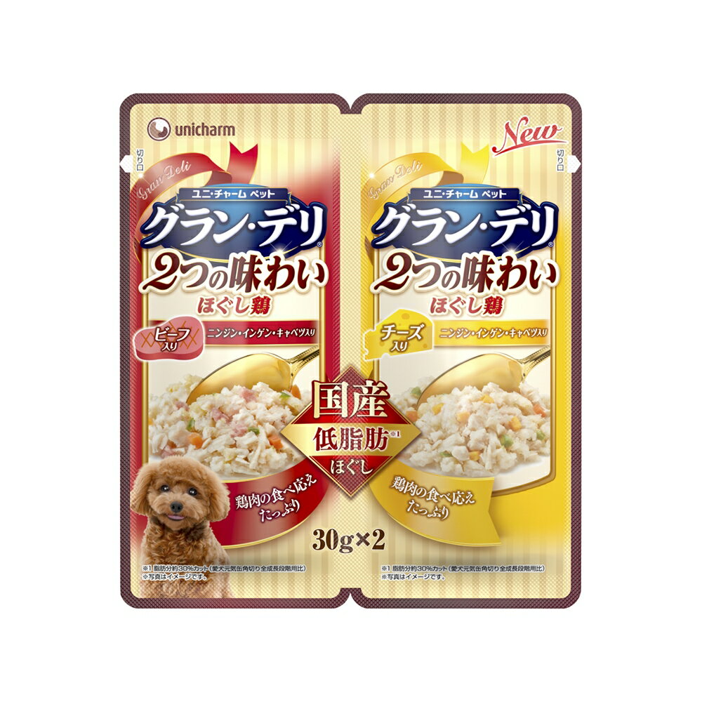 | 商品名 | ユニ・チャーム グラン・デリ2つの味わいパウチほぐし成犬用ビーフ&チーズ30g×2【ドッグフード ウェット レトルト パウチ】 |