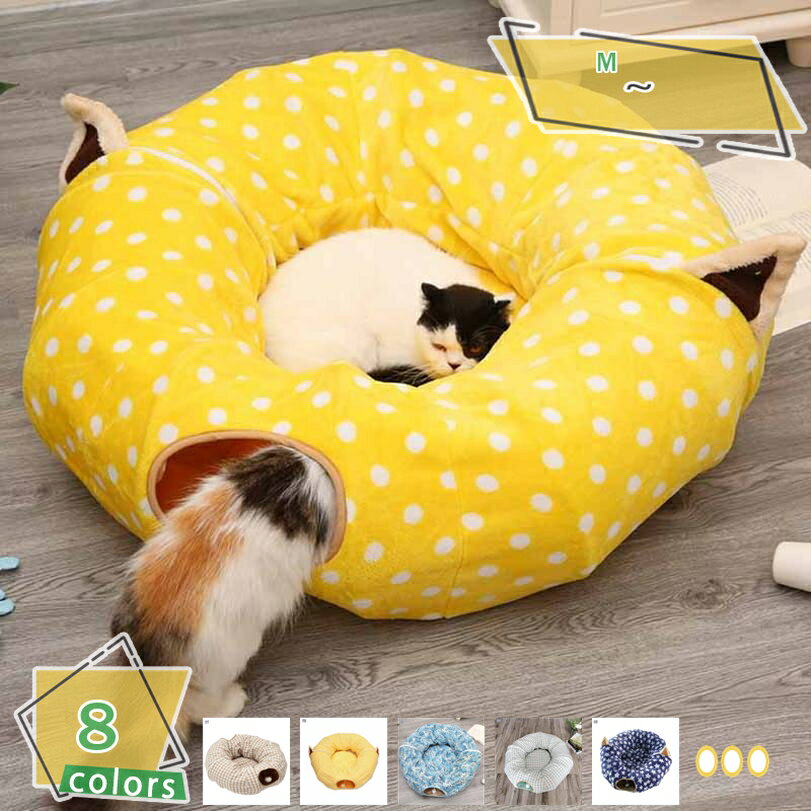 💡 キャットトンネル 猫トンネル ベッド ドーム 猫洞窟 冬用 暖かい 丸い 円状 折りたたみ式 ペットベッド 猫遊宅 ストレス発散 運動不足対策 キャットトレーニング 毛玉付き 可愛い
