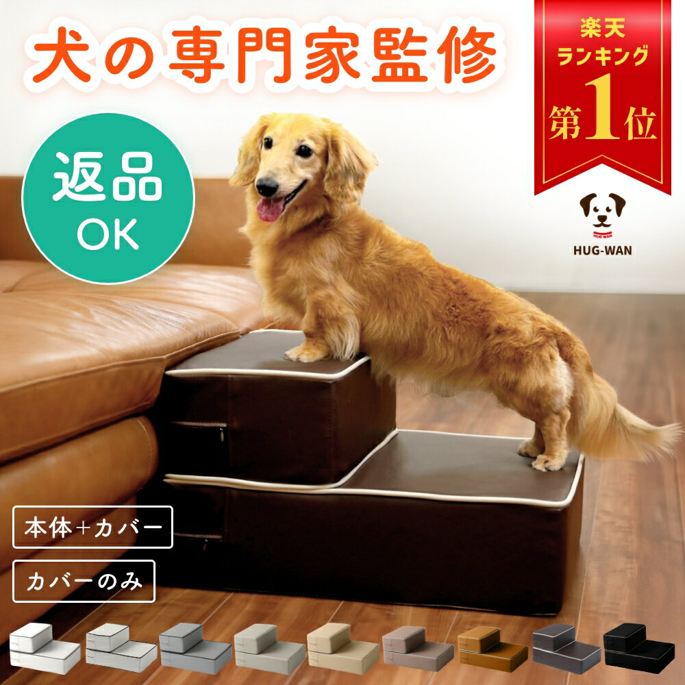 製品概要 犬の専門家監修のもと、わんこ目線で作ったドッグステップです。わんこに負担をかけない正しいドッグステップの選び方をお伝えします。 特徴 わんこ目線のドッグステップとは、、、【上りやすい】■ステップの奥行きを広く改善。楽な姿勢で上れます。【下りやすい】■ステップの奥行きを広く改善。怖がらずに楽な姿勢で下りられます。■パイピングでステップの視認性をアップ。わんこがステップの端をしっかり認識できます。【安全】■底に滑り止めを追加。わんこが飛び乗ってもスベりません。■わんこの足場を用意。パイピングで足場を作りました。万が一、滑っても安心です。■角の強度アップ。わんこの踏み外しを防止します。わんこの次に、飼い主の使い勝手のことも考えました。【インテリアに合わせやすい】【いろいろな場所で使える】【持ち運びラクラク】 使い方のコツ ドッグステップに慣れてもらうためのコツをお伝えします。嫌がっているわんこを無理に乗せては絶対にダメです。まずは段階を追って試してみてください。ステップ1:ドッグステップの存在に慣れてもらうステップ2:フラットから始めるステップ3:できるだけドッグステップを意識させない 仕様 商品名:ハグワン HUG-WANカラー:ピュアホワイト/オフホワイト(旧 ベージュ)/キャメル/ダークブラウン(旧 ブラウン)/モカ/ベージュ/グレージュ/ダークグレー(旧 グレー)/ブラックサイズ:展開時 : (約)幅40cm×奥行き80cm×高さ15cm    折畳時 : (約)幅40cm×奥行き55cm×高さ30cm材質:クッション材 : ウレタンフォーム   カバー : PVCレザー重量:約4.2kg企画:日本(株式会社さくらドーム)生産:中国