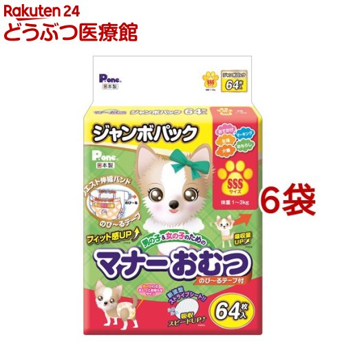 楽天カード会員ならポイント1倍還元でさらにお得に購入できます。送料は送料別、P・ワン 男の子&女の子のためのマナーおむつ のび〜るテープ付き ジャンボパック SSS( 64枚入×6袋セット)【dog_sheets】【P・ワン(P・one)】の最新価格・在庫状況は下のボタンから確認できます。
